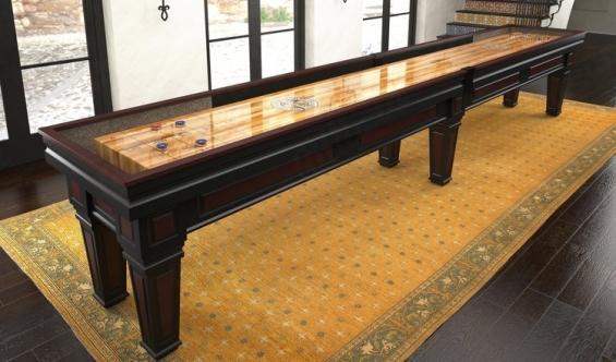 The Worthington shuffleboard table is in a class by itself. With hints of an Italian Gothic style the Worthington cabinet captures your attention with the richness of colors like aged black and deep cherry and the strong classical influence of Italy. The quality and craftsmanship endures over time and this sense of style gains character with age and use.